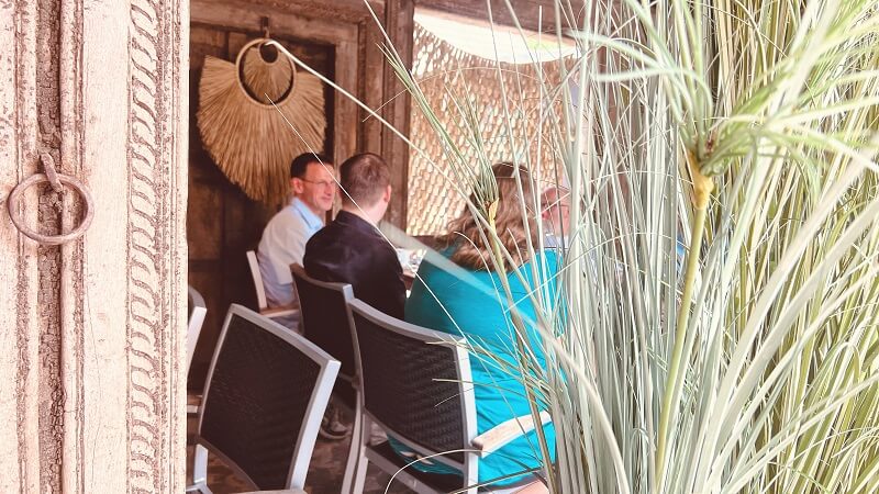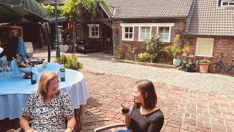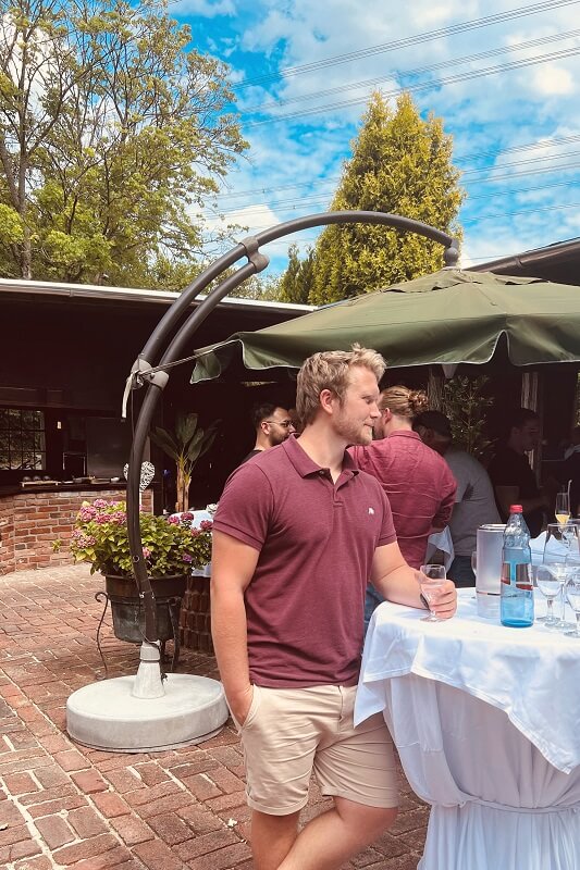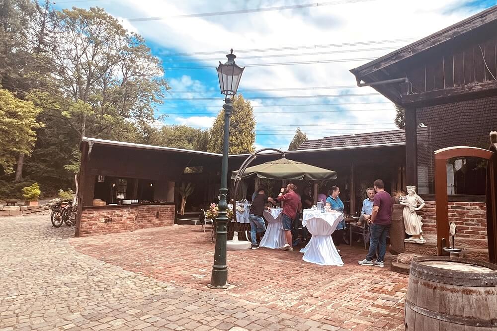 Ein Hauch von Urlaubsstimmung: Im Boho-Stil geschmückt hieß uns Gut Hahn am Freitagmittag herzlich Willkommen. Mit einer Auswahl an frisch gegrilltem Fleisch und vegetarischen Optionen, ergänzt durch vielseitige Beilagen wie Nudel- und Kartoffelsalat blieb niemand hungrig. Dazu ein kühles Getränk – so ließ sich das sommerliche Wetter wunderbar aushalten.